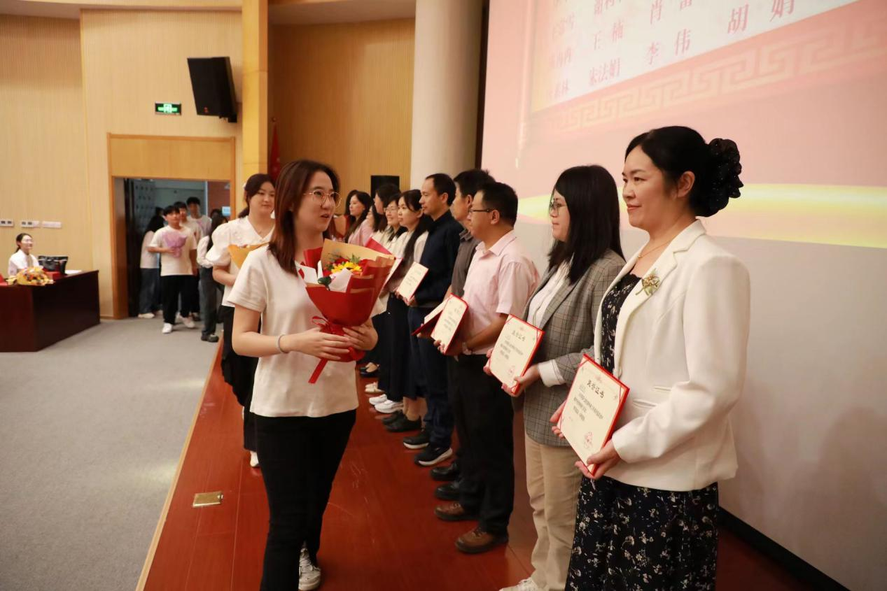 2024年9月10日,全国第40个教师节当天,在学院庆祝第40个教师节暨庆祝表彰会,学生代表向获奖教师献花