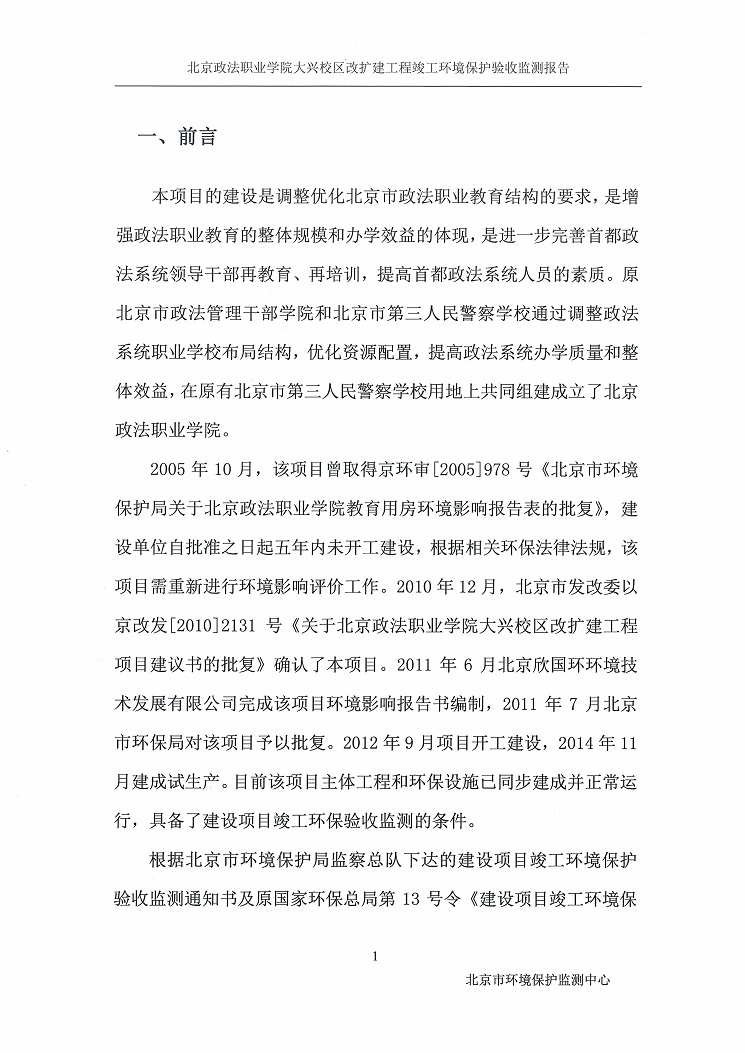 mile米乐集团官网大兴校区改扩建工程建设项目竣工环境保护验收监测报告书