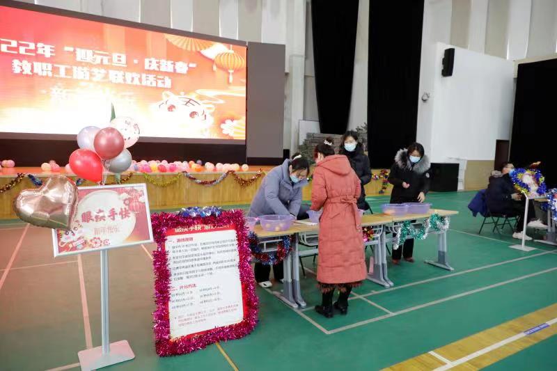 本次游艺联欢活动设“我说你猜、眼疾手快、巧扔沙包、小李飞镖、盲人摸虎、财源滚滚、巧托乒乓”七个项目。教职工伴随着欢快的音乐步入洋溢着浓浓节日氛围的活动场地,积极参与各个游艺项目,活动现场高潮迭起、精彩纷呈,充满了欢声笑语,教师们在游艺活动中交流了感情、愉悦了身心、放松了心情、感受到了浓浓的新年气息,联欢活动在热闹、喜庆、祥和的氛围中圆满结束。