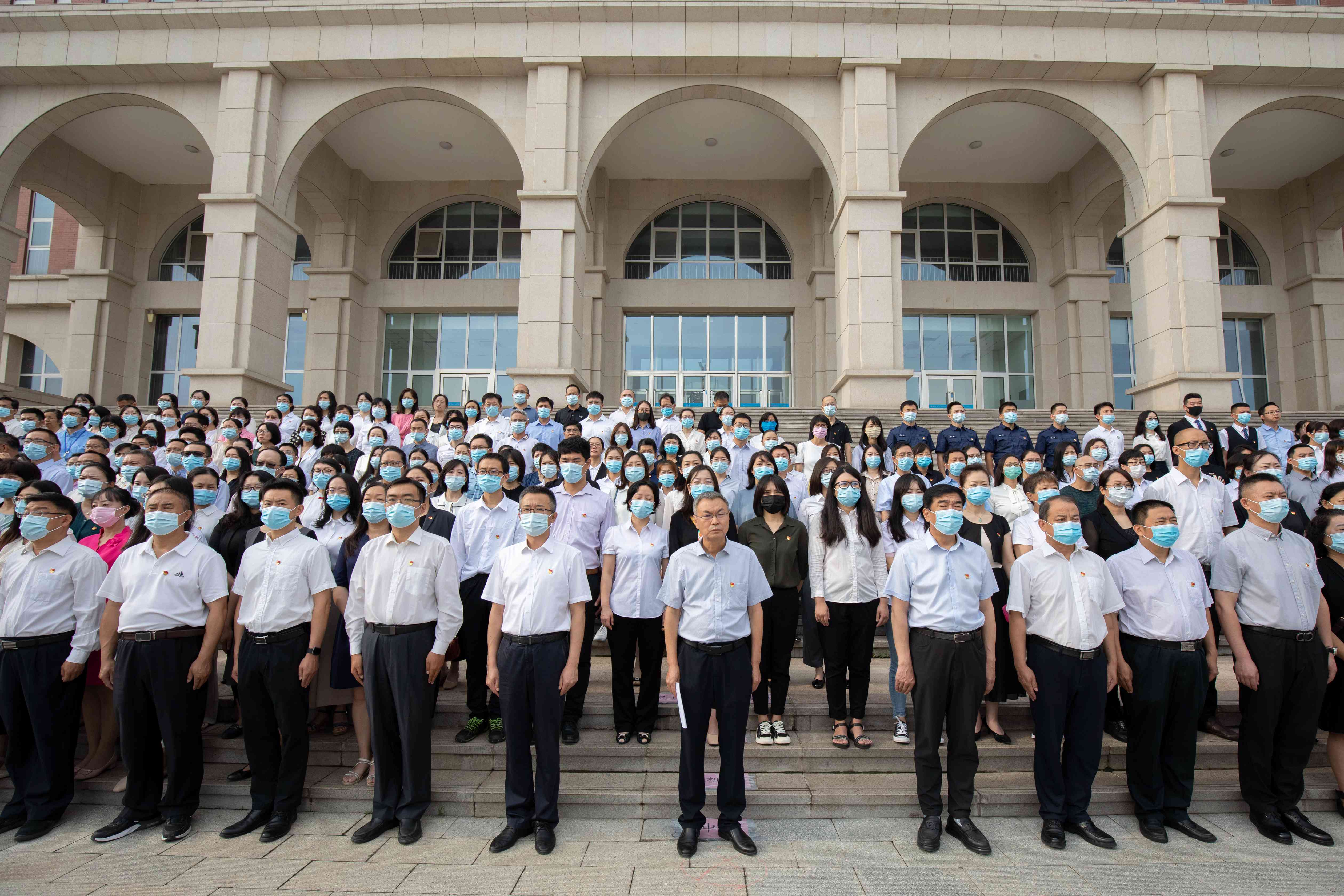 会后,全院党员干部及教职工在学院各会场集中观看了庆祝建党100周年大会现场直播。