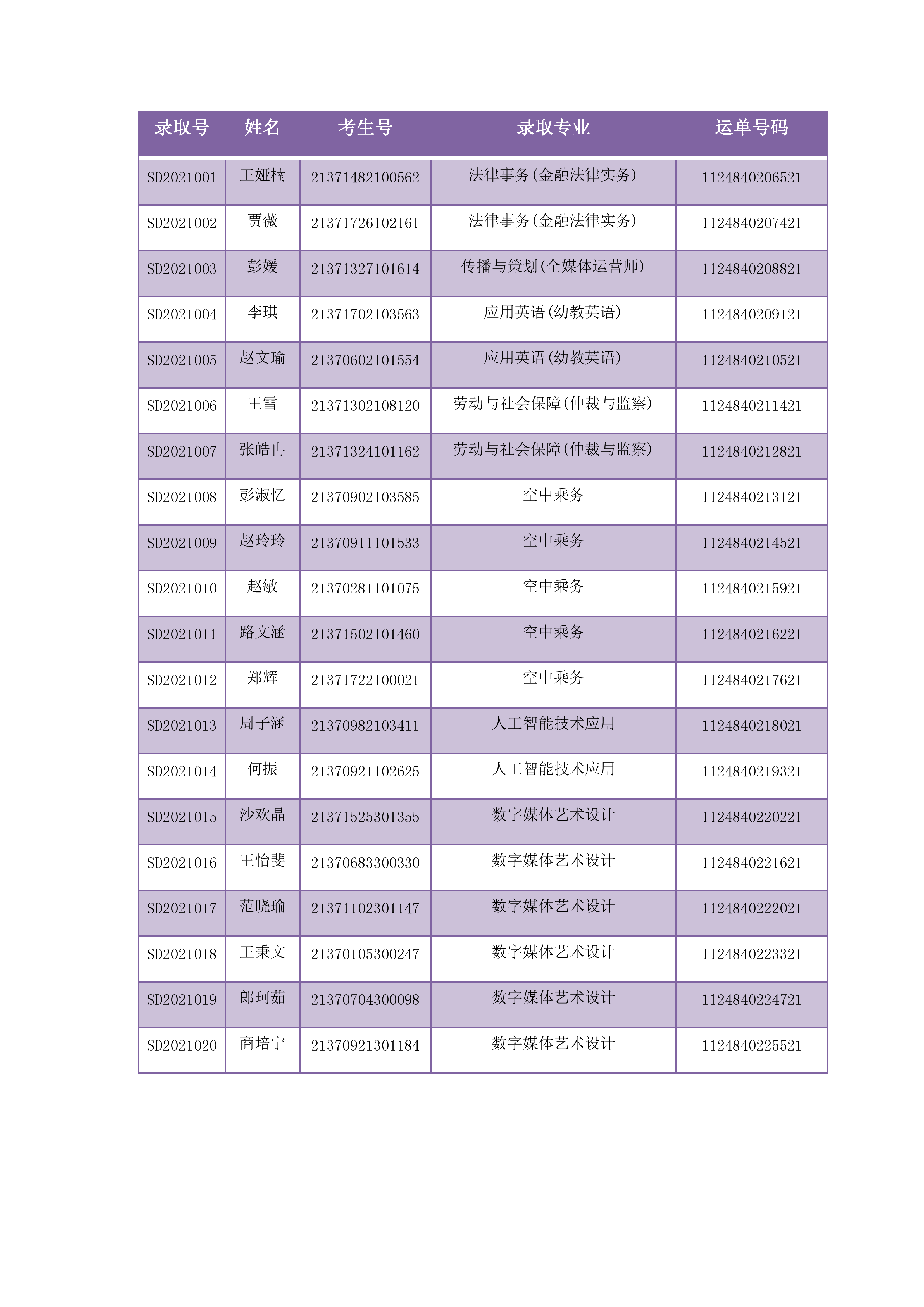 我校2021年山东省高考招生录取工作已全部结束,新生录取通知书已全部发出。