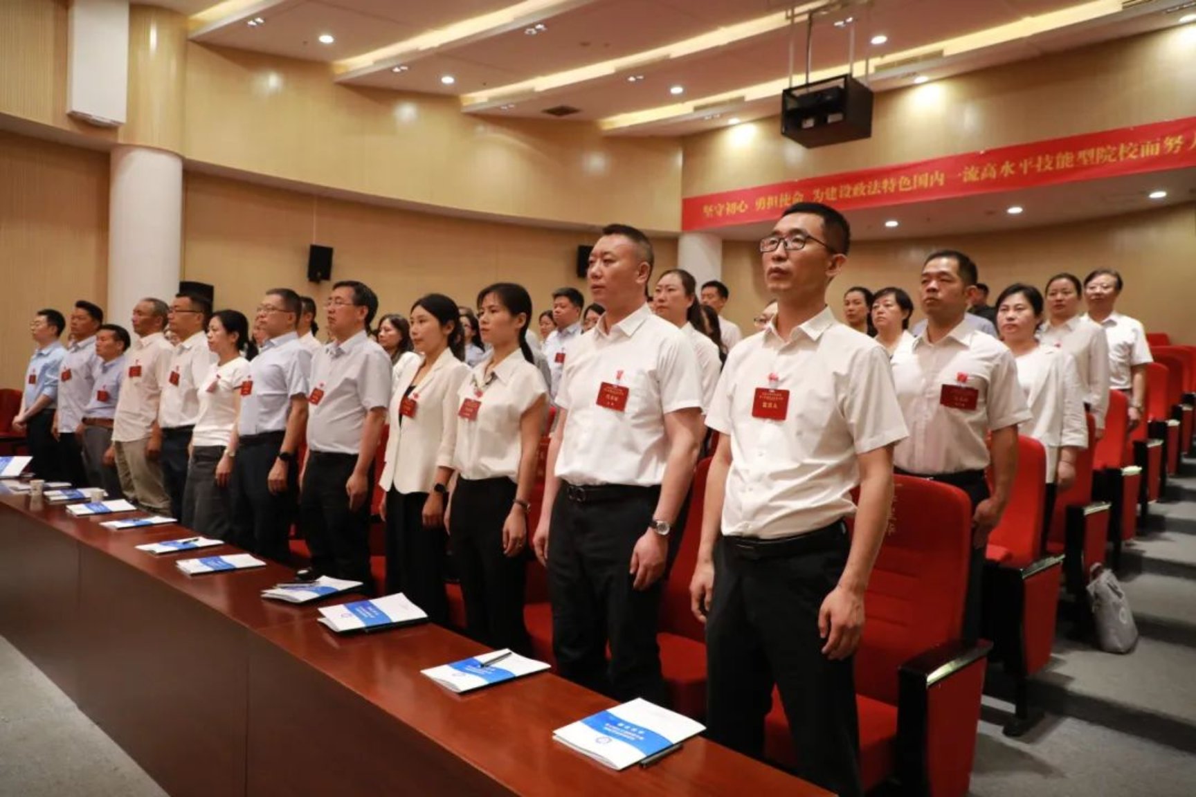 大会号召,在学院党委的坚强领导下,全院教职工和工会会员要站在新起点、担负新使命,抢抓机遇、改进工作,进一步坚持和完善党委领导、行政支持、工会运作、教职工参与的教代会、工会工作机制,广泛凝聚全体教职工力量,围绕各项党政重点工作任务,为“政法特色、国内一流”高水平技能型院校建设作出新贡献!