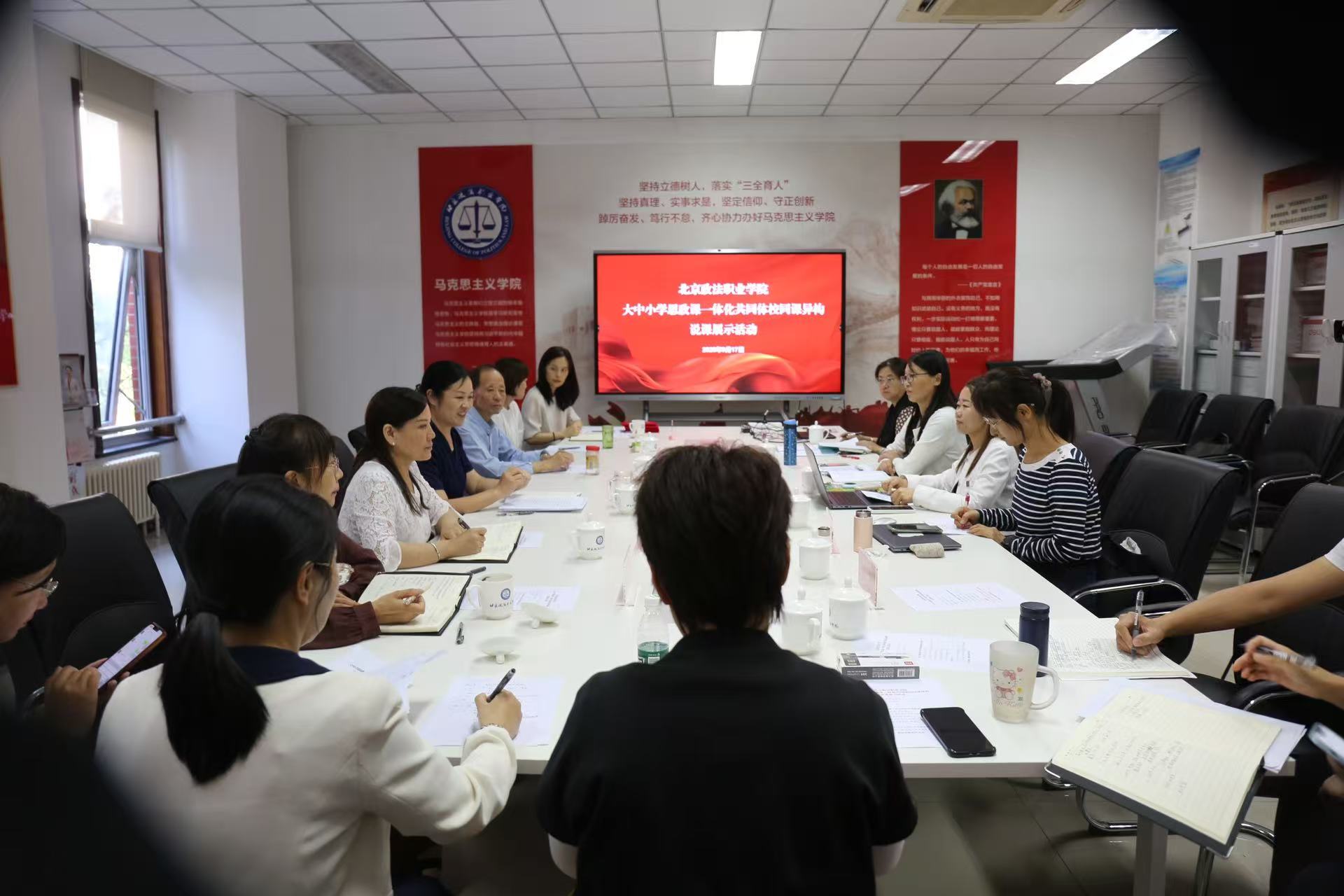 为深入推进大中小思政课一体化建设,落实“多彩京南”主题多项育人活动,9月17日,马克思主义学院开展了大兴区大中小学思政课一体化共同体校同课异构说课展示活动。学院党委委员、副院长谢利苹,学校马克思主义学院党总支书记贾文芳,院长陈春莲,党总支书副书记李建欣,全体思政课教师和大兴区四家共同体学校中小学教师参加活动。